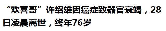 如今他的追悼会还未确定,全网都在惋惜这位资深演员,纷纷说出了对许绍雄印象最深的一部影视剧。 虽然他已经离世,但他的音容笑貌,将会永远留在观众粉丝们心中! 参考资料 九派新闻《“欢喜哥”许绍雄因癌症致器官衰竭,28日凌晨离世,终年76岁》发布时间:2025.10.28 点新闻《家人证实:许绍雄癌症扩散致器官衰竭离世,在亲友陪伴下安详离开》发布时间:2025.10.28 澎湃新闻《港剧“金牌绿叶”许绍雄逝世,享年76岁》发布时间:2025.10.28